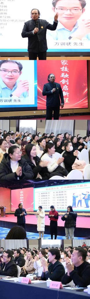 紧接着,活动进入“赋能时刻”,我们诚挚邀请万训状院长,以“融聚家校力,共育少年志”为主题,为家长们带来一场关于亲子沟通和家校配合的精彩讲座。万院长的分享为化解亲子矛盾提供了全新的思路。 这份专业赋能将为孩子成长注入智慧与力量。