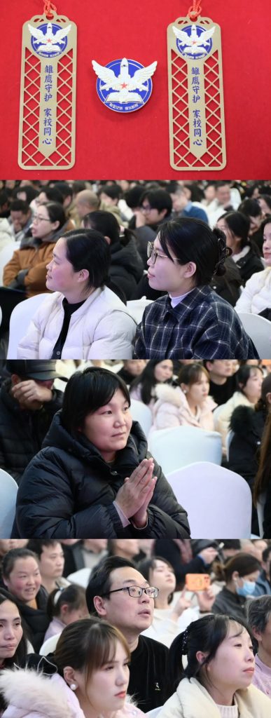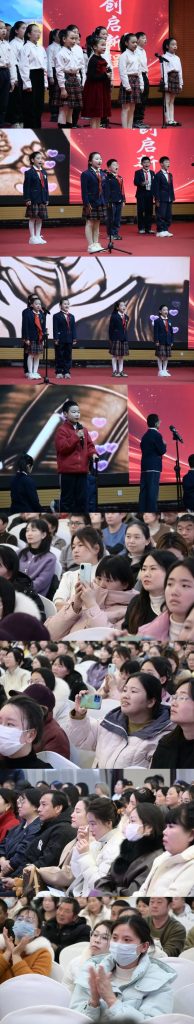 专业引领后是温情庆典。一段暖场短片点燃现场氛围,其中有孩子简笔画、亲子对话及诵读校训身影,每个镜头都展现家校深情。随后,学生代表合唱《萱草花》,唱出对父母养育之恩的感激。歌声未散,四年级三班同学朗诵《当你老了》,以真挚情感触动父母心弦,令人动容。