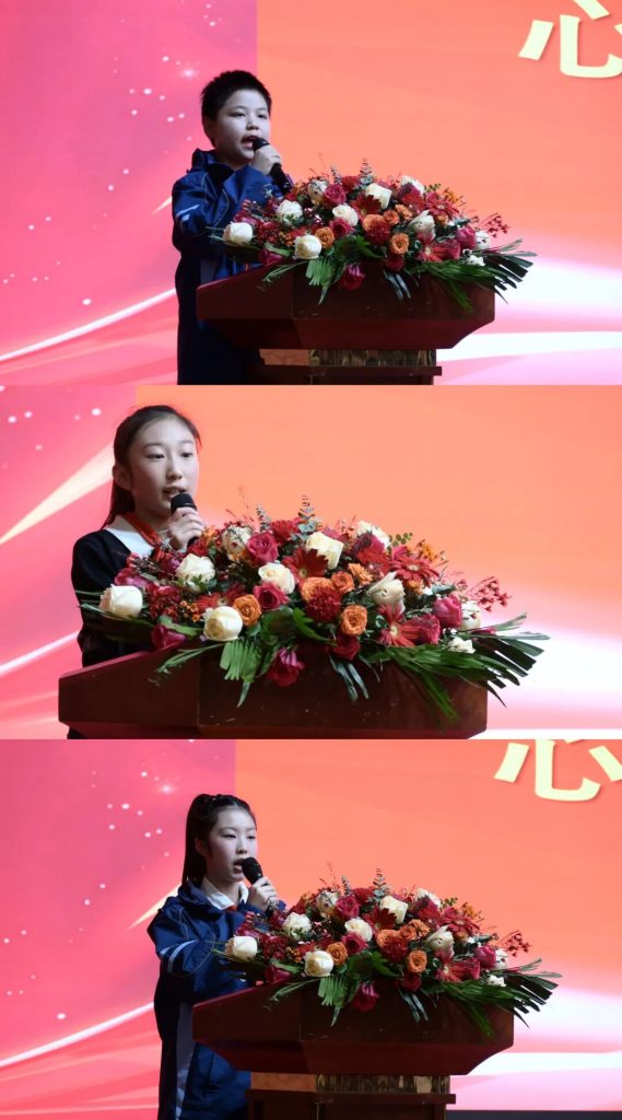 成长的背后,是无数温暖的故事。在“心声分享”环节,五三班石鑫瑜、五一班朱芸萱、六四班高希媛三位同学代表,分享了聆听父母讲述出生及祖辈故事后的感悟,质朴的语言中蕴含着家训的传承与担当。