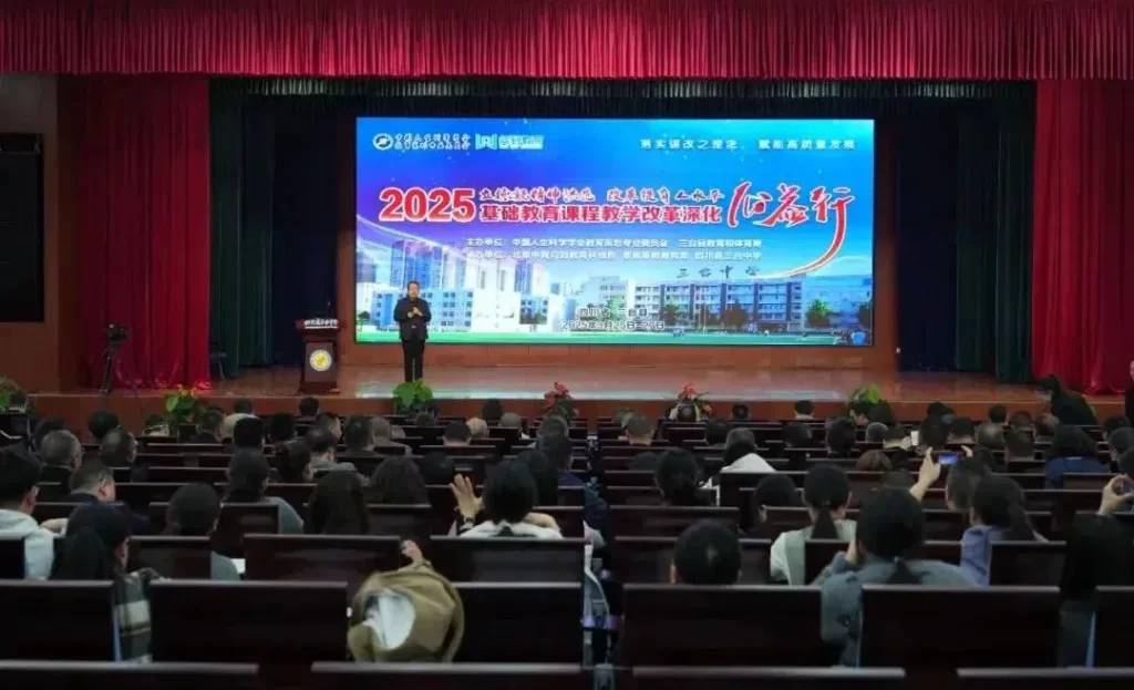 2025年3月25日-27日,“基础教育课程教学改革深化公益行”活动在四川三台开展。本次活动以“思政铸魂·课程育人——2025年基础教育课程教学改革背景下思政‘三金’品牌建设之路探索”为主题,通过实地调研、专家讲座与沙龙互动等形式为当地基础教育提供专业引领及资源支持。教体局领导,机关中层及以上工作人员、中小学负责人、德育骨干、思政名师工作室成员等300余人参加了本次活动。